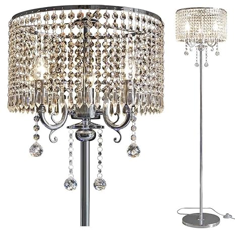 Hsyile Lighting Ku300153 Elegant Designs Crystal Floor Lamp Chrome