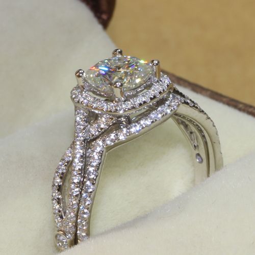 Helzberg 1 Carat Diamond Bridal Engagement Ring Set Cushion Cut Halo