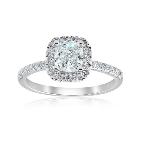 Womens Halo Cushion Cut Diamond Engagement Wedding Ring 14k White
