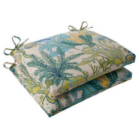 Outdoor 2 Piece Square Seat Cushion Set Green Blue Ocean Scene