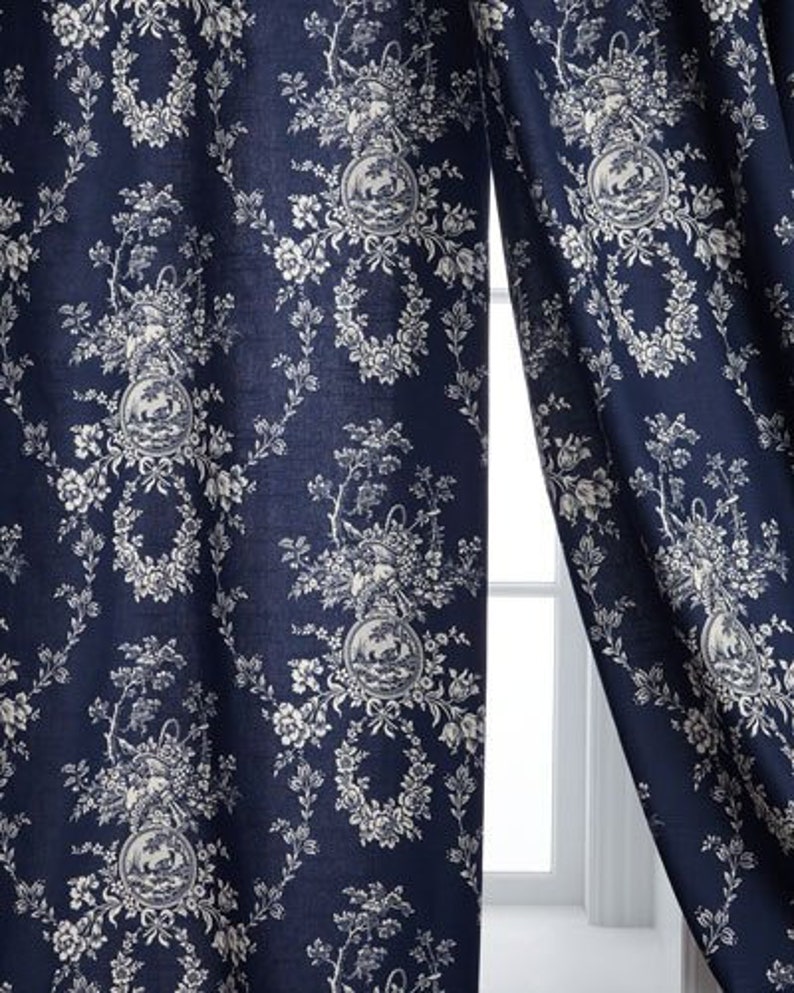 4 Colors Curtains Fully Lined Toile Red Black Navy Blue Etsy