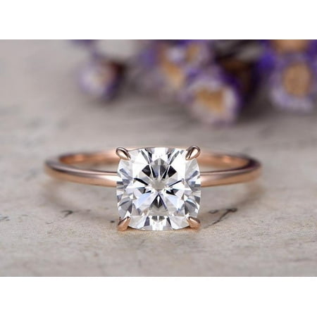 1 Carat Cushion Cut Solitaire Moissanite Engagement Ring In 10k Rose